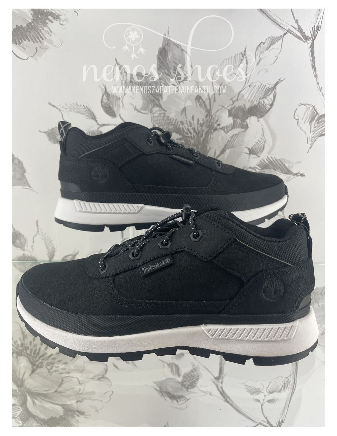 Estas resistentes zapatillas para niño están diseñadas para resistir las intensas sesiones de juego al aire libre a la vez que aportan máxima comodidad. Están confeccionadas con empeine de cuero Premium Timberland® Leather y forro de ReBOTL™, tejido con al menos un 50 % de plástico reciclado. El diseño se completa con una suela con tacos de goma para mayor tracción, una plantilla OrthoLite® acolchada y una plantilla «Does it Fit?» diseñada para garantizar un ajuste perfecto e indicar cuándo ha llegado el momento de cambiar de número.