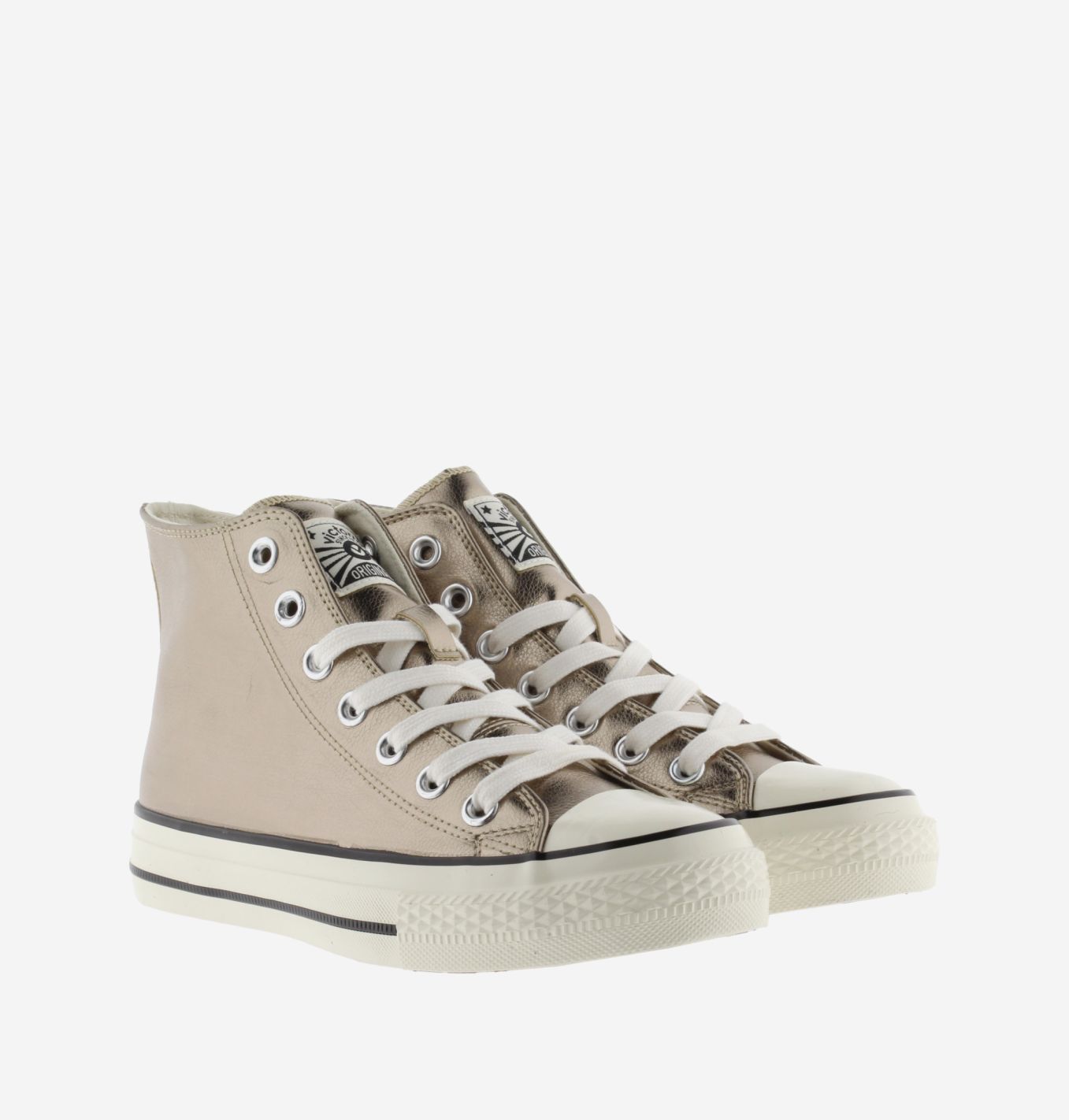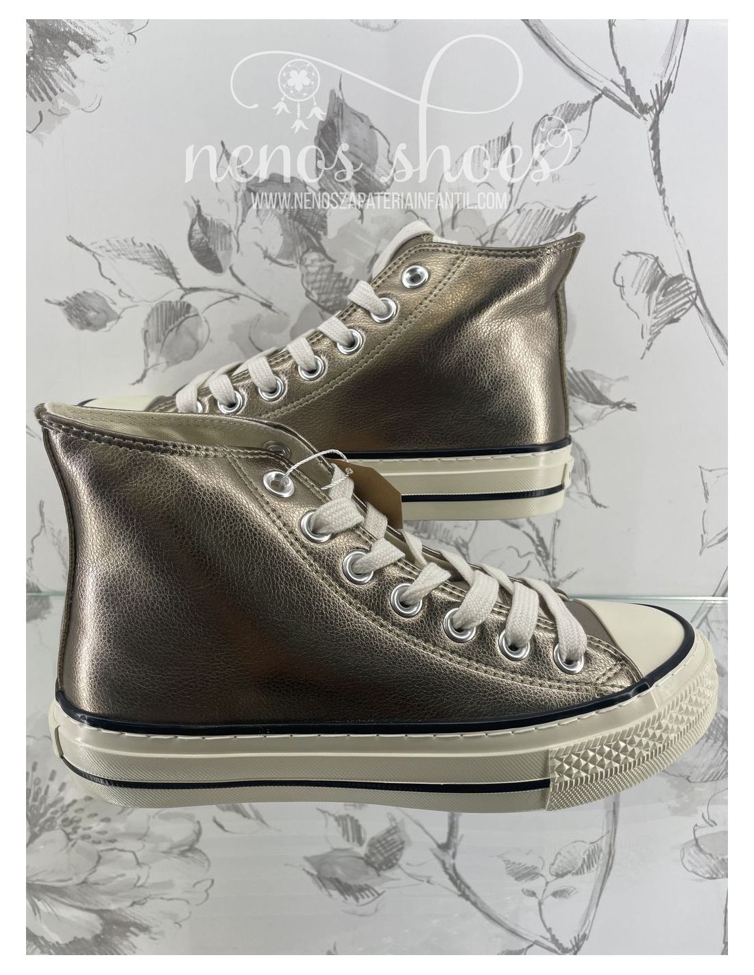 Zapatillas de caña alta plata metalizadas para mujer inspiradas en nuestras primeras basket de los años 70. Parche retro de victoria en el lateral interior y etiqueta a juego en la lengüeta. Plataforma de 2,5 cm y suela de caucho acabado brillo con refuerzo en la puntera que las hace más resistentes y duraderas.