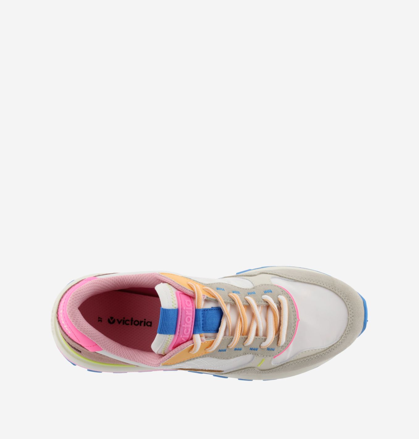 Zapatillas de nylon con piezas superpuestas multicolor de efecto piel y serraje. Su suela bicolor dentada (EVA + Goma) favorece un mayor agarre.