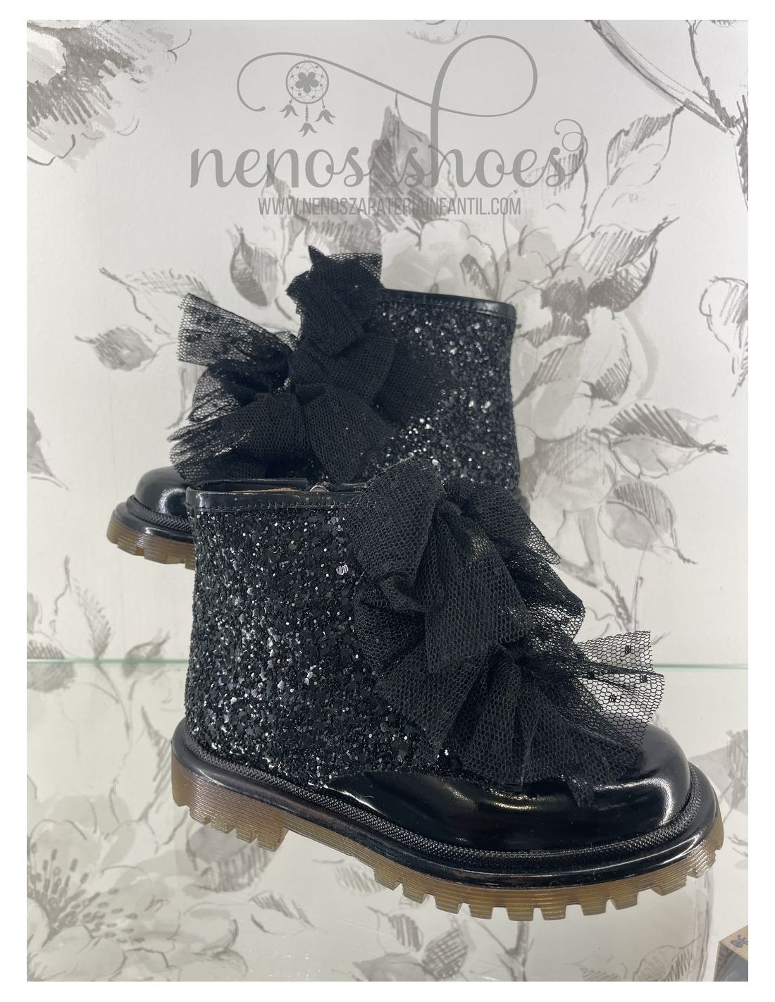 La botita más todoterreno que año tras año triunfa en el catálogo de SIBARITAS, en su versión más ideal con glitter y lazos de tul, que hacen que sea la mejor elección desde el otoño a la primavera. Triunfarán por su diseño, pero sobretodo por ser tan combinables, y por su comodidad y protección, cuidando sus pies para permitirle libertad pero protegiendoles en todo movimiento, superficie y temperatura. Hechas en piel charol vacuno de alta calidad y glitter, con forro de piel transpirable que evita el sudor y mantiene los pies en su temperatura ideal. Cierre con cremallera lateral interior que les facilitará su uso. Diseñadas y fabricadas artesanalmente en Villena con materiales de alta calidad y con nuestra horma avalada tras mas de 30 años, amplia por delante para dejar espacio a sus deditos y perfecta para protegerles el talón. Con suela gruesa track de goma, flexible y antideslizante, pero resistente a cualquier superficie. Apuesta por el calzado de toda la vida, mejorado por los avances de tantos años de tradición, para los niños de hoy en día. Calzado de calidad, es una inversión en sostenibilidad. Calzan su talla real