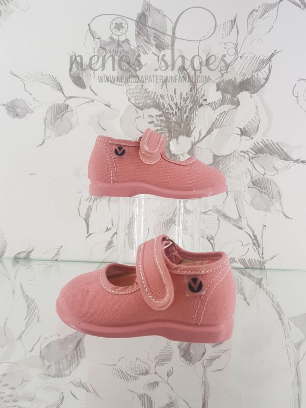 Merceditas de lona de algodón orgánico para niños con cierre mediante tira adherente que facilita el calce y aporta buena sujeción y comodidad. Suela de caucho extra flexible al tono. Ligeras y lavables